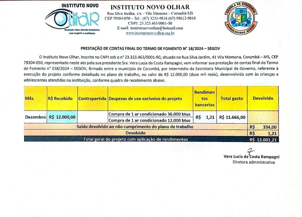 Prestação de Conta Final – Termo de Fomento 018/2024 – SEGOV